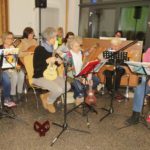 Nach über einer Stunde war die Feier zwar beendet, doch nach dem Schlussapplaus freuten sich die Zuhörerinnen über eine spontane Zugabe der Musiker – Mitsingen erwünscht und natürlich sangen alle wieder gerne mit.