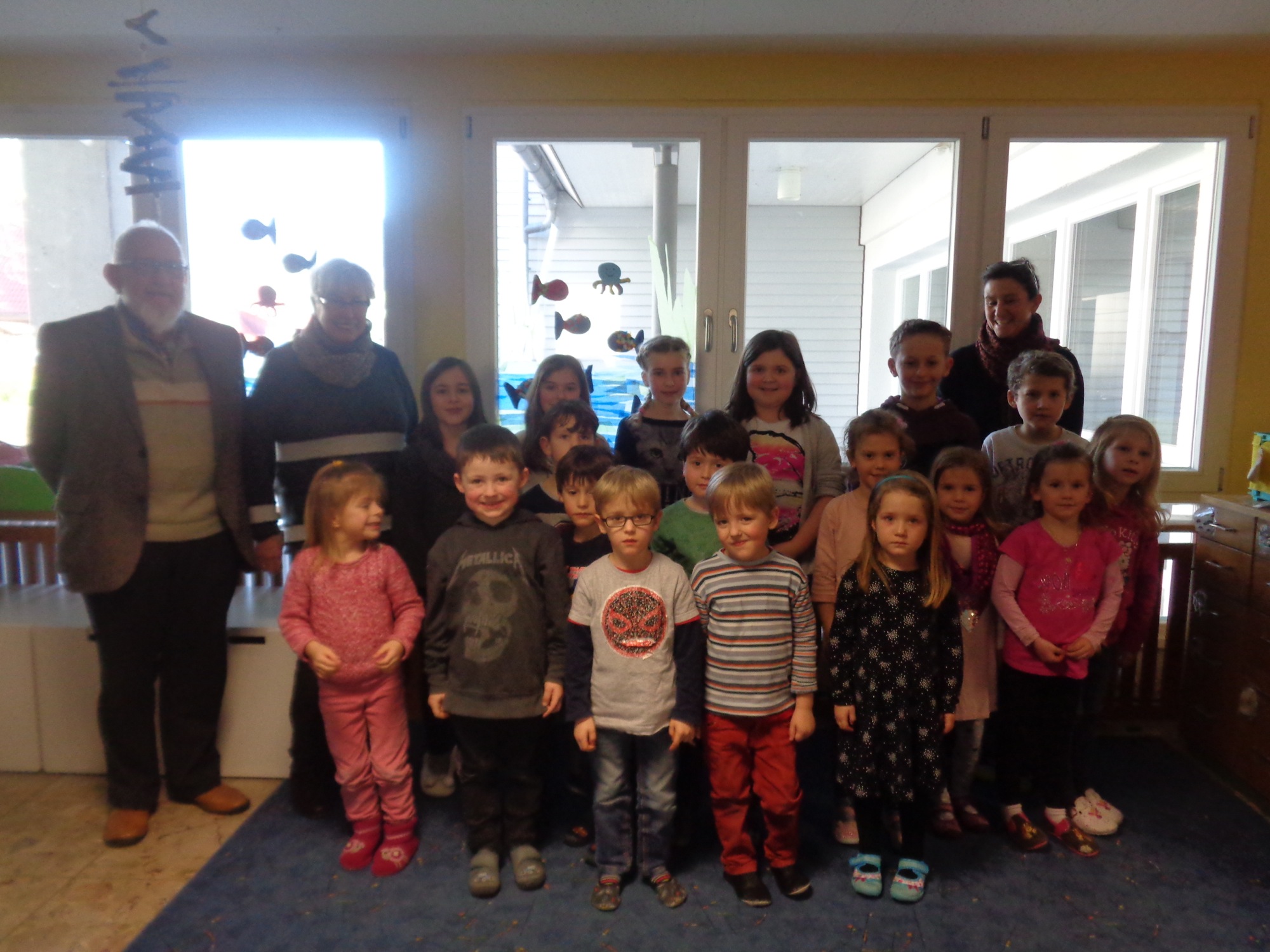 Auch in Unterentersbach im Kindergarten „Wirbelwind“ ging das Lesefreunde-Projekt zu Ende. Sechs Grundschulkinder waren in den Kindergarten gekommen und haben den acht Vorschulkindern regelmäßig vorgelesen. Auch hier lobten Schulleiterin Karin Alst sowie Professor Fischer und Helga Schippers alle Beteiligten.