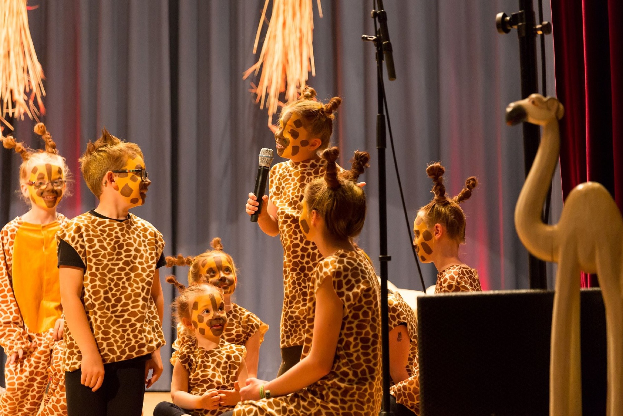 Und das ist die Geschichte, die alle Besucher berührte und begeisterte. Die Giraffen- und die Zebraherde leben schon viele Jahre nebeneinander und getrennt. »Das war immer schon so«, versuchen sie sich immer wieder zu rechtfertigen. Giraffenmädchen Raffa (Vendita Toplica) kann das gar nicht verstehen. »Ich könnte doch nur mal ganz kurz rübergehen. Da sind doch auch Kinder«, versucht sie ihre Mama zu überreden. Doch Giraffenmama (Svenja Esslinger) lässt nicht mit sich reden. Denn »es war einfach immer schon so, dass Giraffen und Zebras nichts miteinander zu tun haben«. Auch die Giraffenherde (Lisa Luchner, Amelie Apfel, Marcel Lehmann, Lea Mellert, Mia Voller, Marie Ben Aissa, Milena Bailer) kann die kleine Raffa überhaupt nicht verstehen und beginnt über sie zu lachen und sich lustig zu machen.