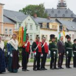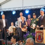 Am Samstag sorgte die Zeller Stadtkapelle mit schwungvollen Arrangements bereits zum Frühschoppen für gute Stimmung im großen Festzelt mitten auf dem Markplatz. Zu den Höhepunkten der Feierlichkeiten zählte außerdem der Sternenmarsch der Zeller und Unterharmersbacher Bürgerwehren gemeinsam mit den Frauensteiner Schützen unter Begleitung der Stadtkapelle. Zahlreiche Besucher verfolgten den Präsentiermarsch mit Salutschießen zum Auftakt des Jubiläums-Festaktes »800 Jahre Frauenstein« am Samstagabend. In ihrer Festrede ging Schirmherrin Veronika Bellmann, Mitglied des Bundestages, auf die bewegte Geschichte und die jüngsten Erfolge der Stadt ein und lobte ausdrücklich die gelebte Partnerschaft von Zell und Frauenstein. Gemeinsam mit Frauensteins Bürgermeister Reiner Hentschel hob sie zudem die besondere Bedeutung ehrenamtlichen Engagements für eine funktionierende Gemeinschaft gerade in kleineren Städten wie Frauenstein hervor, sicherlich eine wichtige Gemeinsamkeit mit der Partnerstadt Zell. Und auch wenn Reiner Hentschel in seiner Ansprache betonte, dass der Besuch der Zeller und die aktive Mitgestaltung des Festprogramms durch Musik und Bürgerwehr Jubiläums-Geschenk genug ist, kamen die Zeller natürlich nicht mit leeren Händen. Zells Bürgermeister Günter Pfundstein überreichte gemeinsam mit den mitgereisten Stadträten symbolisch für die feste Verwurzelung der Partnerstädte einen Apfelbaum und verband das Geschenk mit dem Wunsch, dass die Partnerschaft auch zukünftig wachsen und Früchte tragen möge. Dazu gab es einen Geschenkekorb mit allerlei Köstlichkeiten und eine Laterne, graviert mit den jeweiligen Stadtwappen von Zell und Frauenstein. Schließlich wurde ein Freundebuch überreicht, welches die vielen gewachsenen und an diesem Wochenende auch neu geknüpften persönlichen Freundschaften dokumentieren soll. Nach dem offiziellen Festakt wurde noch lange im Festzelt (oder für die Jugend bei der »Electronix« Open-Air-Schlossparty) gemeinsam gefeiert.