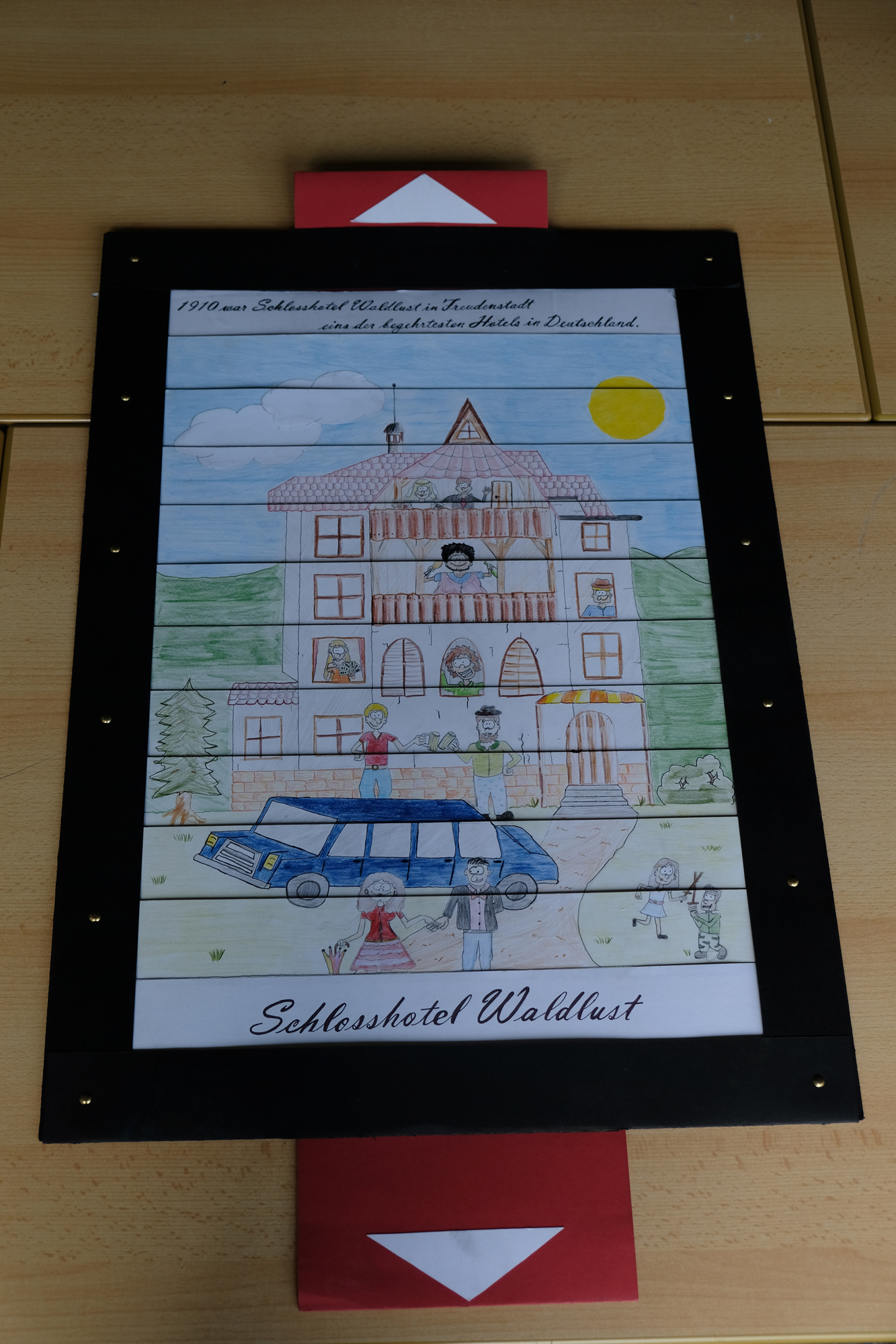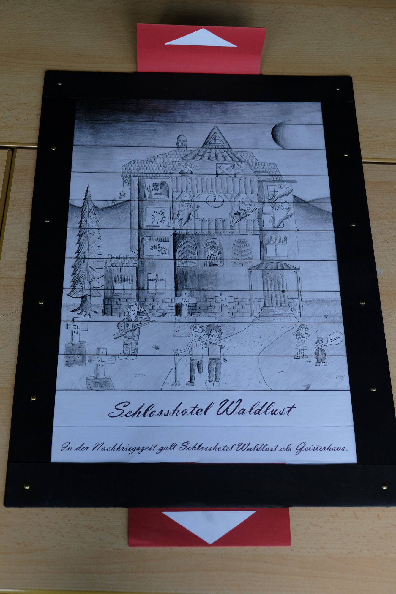 Die Klassen 5 bis 7 hatten zur Aufgabe, Abenteuer in Schlössern, Burgen und Gotteshäusern bildlich zu erzählen. Es sollte eine Geschichte erzählt werden, die Europas geschichtliche und kulturelle Vielfalt zum Ausdruck bringt. Alternativ war es möglich, ein ganz persönliches Denkmal zu setzen – eine Aufgabe, die durchaus kreativ umgesetzt wurde.