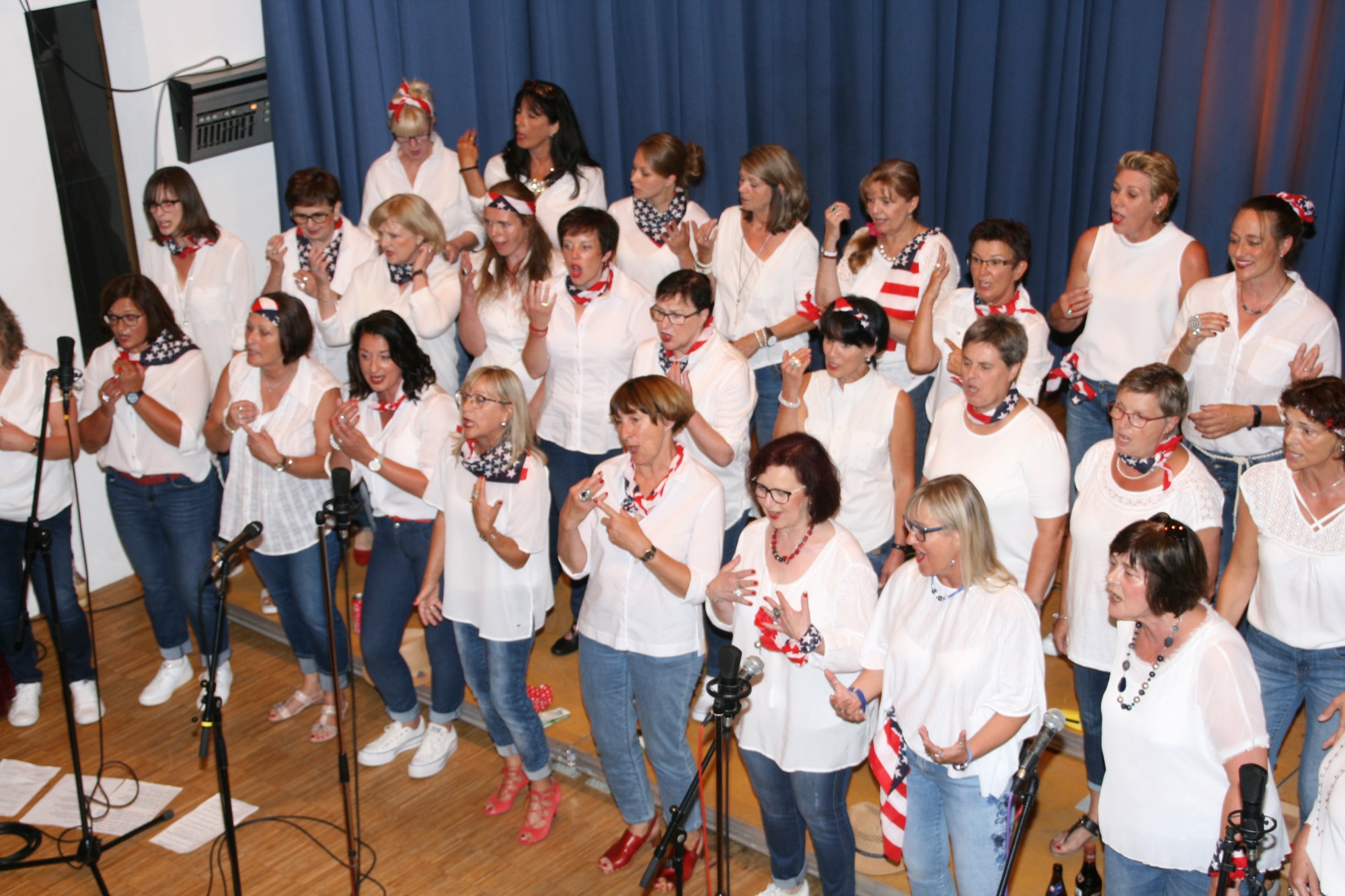 Nach der Pause kamen die Frauen nochmals zur Sache. Acht Songs aus der jüngeren amerikanischen Tradition gaben sie zum Besten. Zu diesem Zweck hatten sie sich mit Tüchern in den amerikanischen Farben geschmückt. Auch der Cowboyhut durfte nicht fehlen. »Route 66« machte die Straßenromantik präsent. Der Calypso »Rum and Coca-Cola« warnte nicht nur vor einem gefährlichen Gesöff, sondern auch die Mädchen von Trinidad vor den stationierten G.I.s.