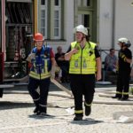 entgegenzutreten entschieden sich zurück im Feuerwehrhaus alle für eine große Wasserschlacht. Der Vorplatz des Gerätehauses wurde zum Schauplatz des Spektakels – mit allem, was dazu gehört. Selbst vom Kommandanten wurde dabei nicht halt gemacht. Nach einer Mittagsstärkung war dann die Abschlussübung am Kulturzentrum dran, an die sich das Abschlussessen mit Schnitzel, Spätzle und Soß’ anschloss.