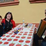 als erfrischendes Getränke. Außerdem hatten die fleißigen Frauen auch Apfelkuchen gebacken und Mostgelee eingekocht. Als weiterer herbstlicher Genuss wurde herzhafter Zwiebelkuchen angeboten. Währenddessen sorgten Gisela und Karl-Heinz Hug für musikalische Unterhaltung und viele Besucher ließen sich zu einem kleinen Markthock bei ihnen nieder. Die Einnahmen vom Mostfest fließen in die Gemeinschaftskasse und werden für Stoffe und Utensilien für die kommende Fasend wieder ausgegeben.