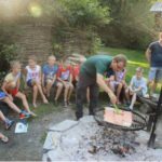 Gemeinsam mit Pfarrer Bonaventura Gerner, der die Ferienfreizeit in der zweiten Woche für zwei Tage besuchte, wurde Gottesdienst gefeiert. In den letzten Sonnenstrahlen des Tages gestalteten die Kinder den Gottesdienst mit selbstgeschriebenen Gebeten und Fürbitten, mit einem Anspiel, mit Liedern und Dekorationen.