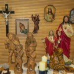 Bettwäsche und Tischwäsche, Bilderrahmen, Spiele, Vasen und natürlich der Klassiker jeden Flohmarkts ist hundertfach dabei: Nippes, Nippes, Nippes. In der religiösen Ecke warten zwei dicke Bücher auf interessierte Kunden: »Das goldene Katholikenbuch« aus dem Jahr 1930 mit persönlicher Widmung (eine Spende aus Neuhausen), sowie ein weiteres Buch aus dem Jahr 1882. Viele schöne Wandkreuze, Sterbekreuze, Versehgarnituren und weitere kirchliche Gegenstände sind dekorativ aufgebaut. Die Weihnachtsartikel werden jedes Jahr mehr und auch für den Advent gibt es viele schöne Dinge zu entdecken.