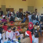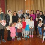 Gisela und Karl-Heinz Hug sangen traditionelle deutsche Weihnachtslieder, die vom Publikum dank Liedblätter sogar mitgesungen werden konnten. Die Kinder durften mit Percussion Instrumenten ihren Teil zur Musik beitragen. Höhepunkt und Abschluss des Nachmittags ist die Bescherung der Kinder mit den gespendeten Geschenken: Jedes Kind durfte eine schöne Tüte in Empfang nehmen und jede Familie erhielt einen Gutschein von den Frauen der Kleiderkammer. Flüchtlingsfrau Djamilya Vagaeva aus Russland kümmerte sich um die Verteilung der Geschenke.