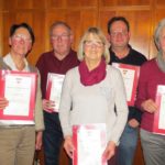 Die schöne Aufgabe der Ehrung langjähriger Vereinsmitglieder ist eine schöne Tradition am Ende der Mitgliederversammlung. Für 40-jährige Mitgliedschaft wurden in Abwesenheit geehrt: Achim Willmann, Helga Huber, Erika Gruberbauer, Ottilie Schwendenmann und Hubert Meier. Ihr Geschenk persönlich entgegennehmen konnten Viktoria Isenmann sowie Erwin und Georg Schwendenmann. Seit 25 Jahren halten sieben Personen dem Verein die Treue: Gerda Hoog, Thomas Zeferer, Gerlinde und Helmut Himmelsbach sowie Lieselotte und Wolfgang Schwarzer. In Abwesenheit wurde Claudia Heid geehrt.