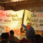 In bester Jubiläumslaune präsentierten sich die drei Dorfdeppen, die tratschten, wie ihnen der Schnabel gewachsen ist. Nicht entgangen ist ihnen, dass die Stadtarbeiter elektrifiziert wurden und dass, wenn man den Pfeilen auf der Straße folgt, auf jeden Fall im Adler landet. Zu hören war, dass »die Städter ihre Borzer jetzt in den Wald schicken und ihre Bolle in einem Giggili als Dung mit nach Hause bekommen.« Der Auftritt der Deppen war für die Zuhörer – wie seit 25 Jahren – ein Fortgeschrittenenkurs im Zeller Ditsch – einfach herrlich!