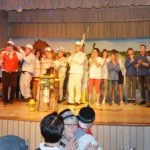 Zum großen Finale zogen Obersteiger Stefan und seine Bergwerkskumpel auf die Bühne. Stimmgewaltig bessangen sie – passend zur Schließung der letzten Zeche von Wanne-Eickel – der Zeller Keramik ihr Lied: »Hey, bald ist der Ofen aus…« und schmachteten im besten Schlager-Schmerz Richtung Karlsruhe hinterher: »…dann geh doch!« Das »Bella Ciao« der Kumpels galt dem Hechten, der jetzt einem »Kieswerk im Tagebau« weichen muss. Ungewiss sei derweil noch, ob in Unterharmersbach dem Schwarzen die Grüne oder der Rote folgt. Musikalisch blickten die Kumpels in die Zukunft und hatten den Fasendschlager 2019 »Kordula Grün« in den Dörfle-Hit »Sybille Grün« umgetextet. Kein Zweifel – die Dörfle-Bure sind immer auf der Höhe der Zeit!