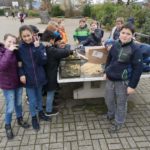 Im Rahmen des Biologieunterrichts kann das Bildungszentrum Ritter von Buss ab heute behaupten: Die Schnecken sind los! Gemeinsam mit Lehrerin Alina Mockenhaupt wurde heute das Terrarium für die elf Weinbergschnecken eingerichtet. Die R5B wusste bereits im Vorfeld allerhand über die Weinbergschnecke zu berichten und war kaum zu bändigen: »Die kommen mit Haus auf die Welt und da drin sind die Organe!«, »Die fressen Salat und Gurken und haben nur einen Fuß!«. Dass die neuen Mitbewohner besonders gefräßig sind, kann man im Moment noch nicht behaupten. Die Helix aspersa maxima, eine enge Verwandte der Weinbergschnecke, stammt aus dem Mittelmeerraum und befindet sich noch im Winterschlaf. Damit der besonders erholsam ist, gingen die Schüler samt Terrarium nach draußen und fingen eifrig an Moos, Blätter, Äste und Steine zu sammeln. Gemeinsam wurde überlegt, wie man das neue Zuhause der langsamen Gefährten einrichten könnte. Im Klassenzimmer durften sich jeweils zwei Schüler »ihre« Schnecke aussuchen. Damit man sie auch später noch auseinander halten kann, wurden die Gehäuse vorsichtig beschriftet und die Schnecken in ihr neues Zuhause gesetzt. Fest steht, dass Schnecke »Bendy« wohl die erste sein wird, die aus dem Schönheitsschlaf erwacht. Als »Bendy« sich Anfang der Woche schon ein wenig aus ihrem Gehäuse traute, stellte Schüler Lukas Rinn fest: »Da haben wir uns genau die richtige Schnecke ausgesucht!«