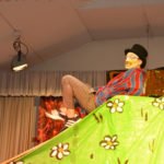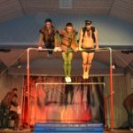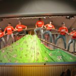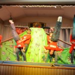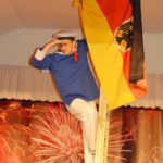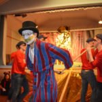 Und schon stampfte die Elefanten-Patrouille angeführt von Oberst Hathi durch den Turnerball-Dschungel. Bei Parade zu Ehren der wackeren Freitagsabendmänner waren Ähnlichkeiten mit Zeller Bürgerwehr-Aufmärschen nicht zufällig – einziger Unterschied: die Quoten-Elefantin im rosa Tüllröckchen. Der Knaller war die finale Abgas-Kontrolle, bei der bunte Papierkonfettis auf die Zuschauer herabregneten. Die Kostüme der Männerriege waren sehenswert. Das mit dem Gleichschritt trainieren wir nächsten Freitag nochmals…