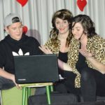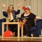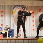 Nach der Pause kamen die zwei Blondinen Katja und Robina wieder auf die Bühne und schwärmten über die Liebe. Katja sagte, sie würde gerne heiraten, aber nur wenn man in der Kirche auch rauchen kann. »Mensch Katja, natürlich kannst du in der Kirche rauchen. Da wird doch immer geraucht – mit Weihrauch!«, lacht Robina. »Ey du bisch so klug manchmal«, stimmt Katja zu. Die beiden sprechen Glückwünsche aus für die Lohgass-Zigeunerin Sabrina Alender, die frisch Mama geworden ist. Als die beiden Youtuber die Wanzen-Plage in Zell ansprechen, sprangen Alex Harter, Bernd Harter und Willi Alender als Wanzen auf die Bühne und sangen »Auf der Mauer auf der Lauer sitzt ne kleine Wanze«. Zusammen mit dem Publikum wurde die Wanzen-Plage dann eher zu einer Freude und die drei Akteure sorgen für viel Gelächter.