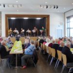 Gestärkt durch Worte im Gottesdienst und der Krankensalbung machten sich die Senioren auf den kurzen Weg ins Pfarrheim. An mit Narzissen geschmückten Tischen Platz genommen, wurden die Seniorinnen und Senioren vom Altenratsteam begrüßt und mit Mandolinen- und Gitarrenklängen auf den gemütlichen Teil des Nachmittags eingestimmt. Bei dem von den sogenannten »Arbeitsbienen« rasch servierten Kaffee und Kuchen wurde reger Gebrauch der gegenseitigen Unterhaltung gemacht.
