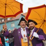 Die Insel-Gemeinschaft hatte sich in Mary Poppins verliebt. Das phantastische Kindermädchen inspirierte die Damen zu eleganten blauen Roben, mit weißen Blusen und roten Accessoires. Echt chic! Die Gegenspieler kleideten sich dagegen als Kaminfeger in tiefstes Schwarz. Kaminfegermeister Olaf Krieg kündigte für die zweite Umzugsrunde eine besondere Attraktion an. Einige verwegene Insulaner stülpten sich dann auf der Bühne mit Ruß gefüllte Säcke über den Kopf und tauchten danach mit rabenschwarzen Visagen wieder auf.