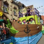 Die Neuhuser erinnerten an Peter Pan und seine Freundin Tinkerbell. Peter Pan wollte partout nicht erwachsen werden und machte sich auf die Suche nach Nimmerland. Sein Gegner war der Piratenführer Captain Hook, der ihm seine Träume vermasseln wollte. Hoch auf dem Wagen kämpften die Kontrahenten miteinander. Wäre da nicht die Fee Tinkerbell mit ihrer Zauberkraft gewesen, hätte Peter Pan den Kampf verloren. So jedoch erwies er sich als der Stärkere, der am Ende ein Schatzkästlein öffnete und die Zuschauer mit süßen Dukaten beglückte. Die Frauen hatten sich in diesem Spiel als geflügelte Tinkerbell in Schale geworfen.