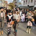 Die Zeit bis zum Eintreffen des Hauptzuges wurden von den Basler Grachsymphonikern mit Bravour überbrückt. Die Guggemusik ist etwas vom Feinsten, sowohl was den Sound als auch das Outfit betrifft. Der Takt folgt einem Schweizer Uhrwerk. Zugleich servieren die Bläser schöne Melodien. Diesmal steckten die 40 Mann in kunstvollen kupferfarbenen Monturen, voran Tambourmajor Florian Kainz im Anzug eines Tiefseetauchers. Die Truppe beglückte die Zeller Fasend bereits zum 12. Mal. Sie wird selbstverständlich auch beim kommenden Basler Morgestraich zum spektakulären Ritual Spektakel beitragen.