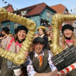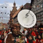 Dass in Zell an Fasend was los ist, wissen anscheinend auch die Störche. Jedenfalls hat sich pünktlich zur Fasend ein Storch auf den First des Rathauses gesetzt. Die kräftige Musik und die lauten Ansagen konnten ihn nicht schrecken. Er schien den Rummel eher zu genießen. Ein ganz anderer Genießer wurde von den beiden Moderatoren eigens begrüßt: Bruder Konrad vom Kapuzinerkloster. Er ist zur Zeller Fasend eigens angereist. Eine gute Idee!