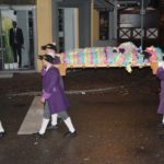Danach wurde eine ausgelassene Wirtschaftsfasend gefeiert, bis Glockenschlag 12 das jähe Ende der Fasend 2019 erreicht war. Dann hatten die Narrenräte die traurige Pflicht, den verstorbenen Narro auf seiner Bahre durchs Städtle zum Storchenturm zu tragen. Die letzten, eisernen vereinigten Fasendmusiker von Zell, Entersbach und Hombe spielten den traurig-schrägen Narrenmarsch. Die riesige Schar der Narren heulte und beklagte den Tod des Narros.