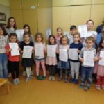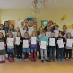 Seitens der Grundschule überreichte Lehrerin Rotraud Walter in Vertretung von Wolfgang Scharer die Urkunden an die Schulkinder. Auch die Kindergartenkinder bekamen eine Urkunde überreicht. Gerne stellten sich alle zum Gruppenfoto auf und freuten sich dann auf das bereit gestellte Salzgebäck.