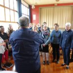 In den vorderen Bänken wohnten die Familie und viele Verwandten des Jubilars dem Gottesdienst bei. Sie hatten gerne den langen Weg aus dem Münsterland auf sich genommen, um bei diesem Festtag dabei zu sein. Der gut disponierte »Joy & Fun Chorus« unter der Leitung von Thomas Dreher gab dem Gottesdienst mit den Gospeln und Chorsätzen »Alta trinita beata«, »All Night, all Day« und »Let us break Bread together« eine besonders festliche Note.