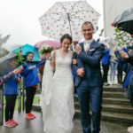 Am vergangenen Samstag schlossen Jana und Felix Herrling in der evangelischen Kirche ihren Ehebund. Trotz regnerischem Wetter wurden die frisch Vermählten nach der kirchlichen Feier von zahlreichen Rock’n’Roll-Kindern und Eltern durch ein Rosenspalier hinunter in den Park geleitet.