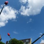 Zu den derzeitigen Kunstwege-Leihgaben neu hinzugekommen sind Arbeiten, die vor rund zwei Wochen installiert wurden. Das sind zum einen »Baumglocke« und »Baumengel« von Josef Büchler. Im Stadtpark hoch in den Bäumen hängend sollen Sonne, Regen und Wind die Werke vollenden.