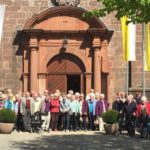 Daran anschließend erzählte Mesner Herr Löffler Interessantes zu Baugeschichte von Kirche, Kloster sowie Wallfahrt. Der Gründungsbau der Kirche liegt im frühen 12. Jahrhundert. Es gab fünf Brandkatstrophen. Nach dem Brand 1715 wurde der Bau einer zweitürmigen Kirche geplant und gebaut. Als diese am 12. September 1907 durch Blitzschlag zerstört wurde, wurde sie im gleichen Stil wieder aufgebaut. Auch die umfangreiche Innenausstattung der Kirche wie Hochaltar, Marien-Altar, Herz-Jesu-Altar, Josefs-Altar sowie Bilder und Statuen erklärte Mesner Löffler.