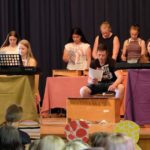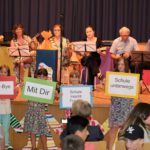 Er ging zurück zu dem Tag vor 16 Jahren, als er Schulleiter wurde. Bei seiner Einführung habe er ein Lied gesungen, das für ihn eine besondere Bedeutung habe. Und genau dieses Lied kam wieder auf die Bühne. Es war »Kinder« von Bettina Wegner. Er sang es noch einmal – zusammen mit seinem Nachfolger Matthias Demmel.