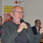 Obwohl inzwischen auf den Rollstuhl angewiesen, war auch Ralf Greiner zur Kreisversammlung erschienen. In einer eindrücklichen, sehr bewegenden Rede verabschiedete er sich von seiner »DRK-Familie«, denn aufgrund seiner Erkrankung wird der jahrzehntelang als leitender DRK-Notarzt tätig Gewesene sein Amt nicht mehr ausüben können. »Wir sollten Idealist bleiben und daran arbeiten, dass die Bedingungen für die Menschen sich verbessern«, gab er seinen Mitstreitern auf den Weg, »Mitleid ist eine unserer besten menschlichen Eigenschaften.« Ihm zu Ehren erhoben sich sämtliche im Saal Anwesenden, um lang anhaltenden Beifall zu spenden.