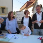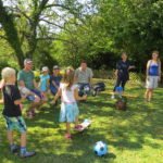 Damit aber mehrere Mägen zufriedengestellt werden konnten, haben Jugendliche vor dem Evangelischen Gemeindehaus mit herkömmlicher Energie gegrillt. Die aufgenommene Energie konnte dann auf der Wiese unterhalb des Evangelischen Gotteshauses in Bewegung umgesetzt werden. Die Jugendlichen spielten Tischtennis, die Kleinen vergnügten sich auf der Hopsburg.