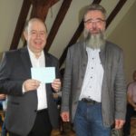 Pfarrer Reinhard Monninger von der evangelischen Kirchengemeinde hat Pfarrer Seibt bei der Organisation und Durchführung des ökumenischen Kirchentages kennengelernt. Er dankte ihm für die vertrauensvolle Zusammenarbeit und seine stets freundliche Art, auch in stressigen Situationen. Als Abschiedsgeschenk überreichte er ihm ein gläsernes Kreuz, das das Thema des Kirchentags darstellt »Jesus ist das Licht der Welt«. Das Kreuz funkelt in verschiedenen Farben. »Du bist eines der bunten Tupfer auf dem Kreuz«, erklärte Monninger.