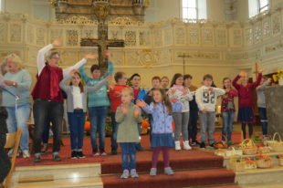 Der Erntedanksonntag wurde in der Pfarrkirche als Familiengottesdienst gefeiert, zu dem die Kinder eigene Erntekörbchen mitbringen durften. Die Gruppe Horizont gestaltet die Feier mit modernen Liedern. Beim Anspiel am Altar ging es um das Thema »Wasser«.