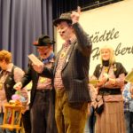 Eingebettet waren die Wort- und Liedbeiträge in Ballett-Darbietungen. Die kleinen Homberle hatten zum Song »Was für eine geile Zeit« einen schwungvollen Tanz einstudiert, den sie nach Zugaberufen des Publikums gerne ein zweites Mal zeigten. Das Ballett der Großen hatte unter dem Motto »Descha wü« die besten Sequenzen der Auftritte der letzten Jahre zusammengestellt, in den Kostümkisten gekramt und einen tollen Remix auf die Bühne gezaubert.