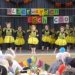 Nach der Kaffeepause sorgten wieder Gisela und Karl-Heinz mit bekannten Fasendliedern zum Singen und Schunkeln für Stimmung im Publikum. Der nächste Programmpunkt kündigte sich an, als 24 noch sehr sehr junge Tänzerinnen, angeführt von ihrer Choreografin Susi Dangl, in den Saal tänzelten. Eine Gruppe von Mädchen im Alter von 6 und 7 Jahren zeigten auf der Bühne zur Musik »Good to be alive« in wunderschönen Hippiekostümen eine gekonnte Tanzdarbietung, die sie nach Zugaberufen des Publikums gerne ein zweites Mal vorführten. Ganz entzückt waren die Seniorinnen und Senioren, als die 4- und 5-jährigen als Bienen gekleidet nach der Musik von Biene Maja einen eindrucksvollen Tanz auf die Bühne zauberten. Das begeisterte Publikum forderte eine Zugabe.