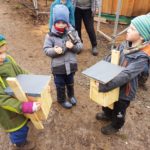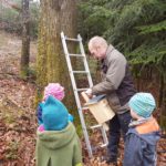 Vergangenes Weihnachten haben die Waldkinder Zell a. H. auch an die Tiere im Wald gedacht und ihnen einen Weihnachtsbaum geschmückt mit vielen Leckereien wie zum Beispiel Apfelscheiben, Nuss-Ketten, Karotten, Körner und Samen für die Vögel. »Die Füchse«, das ist die Gruppe der 3- bis 6-Jährigen, bekamen zu Weihnachten einen Werkzeugkasten. So entstand die Idee, Nistkästen für die Vögel zu bauen.