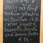 Doch der Renner war der »Daheim-Burger« aus 200 g pur Beef medium gebraten mit Basilikum, Chillicreme, Mozzarella, Tomaten und Pommes frites zu 14 Euro. Über 500 Exemplare dieser Köstlichkeit wurden von den begeisterten Kunden geordert. Jürgen Pfeiffer: »Ein einmaliger Rekord«, und er weiß wovon er spricht. Denn diese »Burger« stehen schon seit vielen Jahren als Frühling-, Sommer-, Herbst- und Winter-Burger auf der Speisekarte.