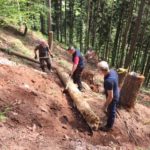 Die Schwarzwald- und Wandervereine kontrollieren das ganze Jahr über im Ehrenamt die Wanderwege und Sitzgelegenheiten. Die Wege werden das ganze Jahr über gepflegt und bei Bedarf ausgebessert. Der Wanderweg, welcher in Hinterhambach vom Strietparkplatz hoch zur Kuhhornkopfhütte als Pfad führt, war durch die Frühjahrsstürme stark betroffen. Mehrere entwurzelte Bäume hatten den Pfad unbegehbar gemacht. Mit großem Einsatz hat der Wegewart des Wander- und Freizeitverein Unterharmersbach Thorsten Reich mit den zwei Helfern Erich Dold und Josef Lehmann fachmännisch den Weg wiederhergerichtet. Es mussten Baumstümpfe beseitigt, Befestigungen angelegt und mit Erde aufgefüllt werden, damit man den Weg in seiner alten Form wiederherstellen konnte. Jetzt kann man auf dem schönen Pfad wieder genussvoll hoch zur Kuhhornkopfhütte wandern.