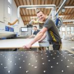 Erster wichtiger Schritt des Modernisierungsprozesses war die Installation einer vollautomatischen Säge/- Lageranlage die den Startschuss für die komplette Umstrukturierung des Maschinenparks hin zur Hochleistungsmanufaktur gab. Ihr folgten unter anderen ein neues 5-Achs Bearbeitungszentrum und eine Kantenanleimmaschine mit automatischer Rückführung. Dabei wurde der Fußboden komplett erneuert und eine LED-Beleuchtung installiert, um optimale Arbeitsbedingungen zu schaffen. Dies wird auch durch die neue Absauganlage gewährleistet, die stündlich 60.0000 Kubikmeter Luft austauscht und so für ein sauberes Arbeitsklima in der Werkshalle sorgt.