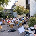 Im Probelokal im Kulturzentrum sitzen zu Spitzenzeiten knapp 70 Musikerinnen und Musiker, berichtet Dirigent Stefan Polap. Nach den aktuellen Abstandsregeln können momentan maximal 24 Musiker darin proben. Daher finden Gesamtproben aktuell im Freien statt. So auch gestern, als die Musiker eine große Fläche von gut 220 Quadratmetern hinter dem Kulturzentrum einnahmen. Mit dem Cäcilienkonzert im Hinterkopf hofft man auf weitere Lockerungen, so dass nach den Sommerferien eine optimale Vorbereitung auf das musikalische Highlight begonnen werden kann.