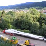 Die selbstfahrende Transportplattform sollte in der vorletzten Augustwoche in Zell eintreffen. Am Montag war es dann soweit und am Folgetag um vier Uhr morgens sollte das Manöver beginnen. Stand gestern waren im provisorischen Schwerlastdepot Zell unter anderem sechs Rotorblätter und ein unbeladener Selbstfahrer zu sehen. In einer offiziellen Erklärung des Energieversorgers Badenova ist von einer Normabweichung beim Rotorflansch die Rede.