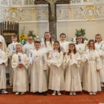 Pfarrer Gerner holte zusammen mit den Ministranten die aufgeregte Kinderschar ab. Nach dem feierlichen Einzug in die festlich geschmückte Kirche zelebrierten die Kinder ihren Gottesdienst zusammen mit den Eltern, Paten und Verwandten. Die Vorbereitung auf ihre Erstkommunion hatten sie in diesem Jahr unter das Thema »Wir sind alle ein Puzzleteil in Gottes Welt« gestellt. Auch die beiden Erstkommunion-Gottesdienste griffen dieses Thema auf. Der Gottesdienst war geprägt durch das zahlreiche Mitwirken der Kinder.