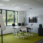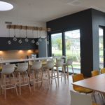 Die insgesamt 30 Büroarbeitsplätze sind ergonomisch mit höhenverstellbaren Tischen und doppelbreiten Bildschirmen ausgestattet. Alle Arbeitsplätze, auch die Technikräume im Erdgeschoss, sind lichtdurchflutet und hell. Ein Workcafé, Ruheplätze und Projekträume bieten den Raum für viel Kreativität. Nicht zuletzt rundet ein Grillplatz im Außenbereich des neuen Firmengebäudes das Wohlfühlambiente ab.