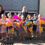 Mit Liedern wie »Ich bin da« und »Guten Morgen wünschen wir« sorgten die Kinder für das musikalische Rahmenprogramm. Nach einem Klatschspiel, einem Zahlengedicht und einem Tanz zu dem Lied »Sofia« von Alvaro Soler wurden auch die Familien zum Tanzen eingeladen. Somit entstand eine lustige gemeinsame Tanzeinlage. Danach war es dann auch schon soweit: Die Schultüten wurden übergeben. Freudestrahlend wurden sie von den Kindern entgegengenommen. Leider musste die Kooperationslehrerin Marlene Kühnhanss verabschiedet werden. Als Dankeschön für ihre langjährige Zusammenarbeit erhielt sie ein selbstgestaltetes Album mit Fotos der Kinder mit den beliebten Montessori-Materialien. Nach dem Programm ließen die Familien und Erzieherinnen den Abend mit Getränken und Pizza ausklingen.