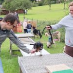 Vorsitzende Elke Reinisch, die Übungsleiter Marianne Landler und Martin Lehmann und die Übungshelfer Egon Sendler und Lukas Reich hatten ein tolles Programm zusammengestellt, bei dem Kinder spielerisch mit den Hunden Freunde werden. Hindernisse und Hürden überqueren und dann den kleinen Freunden ein Leckerli zustecken. Oder über Wacklige Untergründe zu gehen und durch einen Tunnel den Weg zum Tageslicht zu finden, machte den Vierbeinern richtig Spaß. Beim Kennen der Rassen und der Namen der verschiedenen Hunderassen wie Australian Shepard, Parsoo Jack Russell, Großpudel, Pinscher und natürlich bei Schäferhunden als großer Beschützer der Kleinen, zeigten Kinder und Jugendliche bravourös, wie gut sie sich in der Hundewelt auskennen.