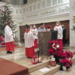 An den Ausgängen der Kirche verteilten die Ministranten Weihnachtsgrüße von Pfarrer Gerner, dem Seelsorgeteam und Gemeindeteams sowie den Kapuzinern an die Gemeindemitglieder.