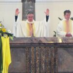 »Schön, dass Sie alle da sind und wir fast wieder normal miteinander die Osternacht feiern können«, begrüßte Pfarrer Gerner. Er bezeichnete das Licht als das zentrale Element der Osternacht. Pfarrer Gerner erklärte zu der derzeitigen Dunkelheit des Krieges, dass das Feuer/Licht dazu einen Kontrapunkt setzt. »Jesus hat uns Licht geschenkt und Hoffnung. Er vertreibt die Dunkelheiten unseres Lebens«, betonte Gerner. Er segnete das öster liche Feuer und entzündete eine Flamme, die wiederum die Osterkerze entfachte.