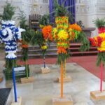 Danach zog die Gemeinde in die Kirche ein. Dort standen mehrere Palmstöcke der Kommunionkinder im Altarraum, die ein farbenfrohes Bild abgaben.