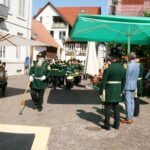 Am Sonntag morgen marschierte um 10.30 Uhr die Bürgerwehr mit Spielmannszug, Trachtenfrauen und Schützen durch die Hauptstraße zum Kanzleiplatz, wo sie von der Stadtkapelle mit dem Marsch »In alter Freundschaft« und zahl reichen Besuchern begrüßt wurden.