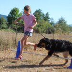 Bei hochsommerlichen Temperaturen trafen sich 18 Kinder und Jugendliche, acht Vereinshunde und acht Betreuer auf dem Vereinsgelände, um mehr über den »besten Freund des Menschen« zu erfahren. Marianne Landler teilte die Kinder von 8 bis 14 Jahre, die Betreuer und ihre Hunde in vier Gruppen auf. In der Gruppe wurden gemeinsam die abwechslungsreichen Aufgaben bewältigt. Dabei durfte jedes der Kinder mal der Hundeführer sein.